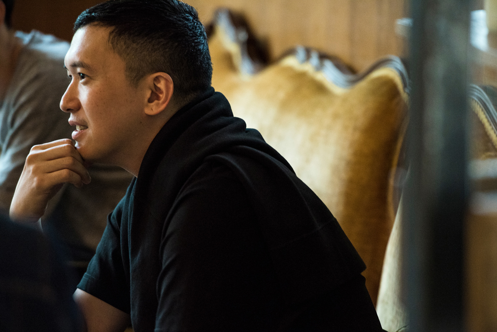 「ミニマルなイメージ」と迫村が言うように、インタビューの日も全身ブラックで登場したカイエ氏。最近はブラックしか着ない、とインタビュー後にもBIOTOP2階でブラックの服をお買い上げ。