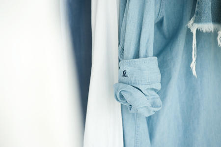 N 2回目に見にきたとき「あ、洋服屋さんになってる!」って言ってくれたよね(笑)。30年スタイリストをやってきて、単純にファッションだけじゃなかったのが逆によかったのかも。広告で普通のおばさんのスタイリングをしたり、ミュージシャンには古着を着せたり、ラグジュアリーもトラッドもパンクも何でも好き。それが自分では欠点だと思っていたけど、いつのまにかいろいろな服の良さを吸収していたみたい。だからトレンド過ぎずマニアック過ぎない普遍的なアイテムをと考えたときに、シャツが思い浮かんだ。古着とかアメリカンプロダクツも大好きだったから、最初はメンズライクなワークシャツをレディスサイズで作ろうと決めていた。