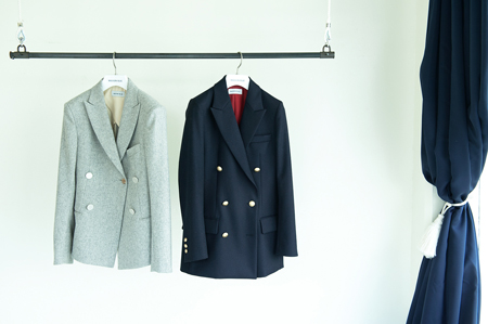 美しいテーラリングにモダニティがプラスされたダブルジャケット。各¥85,000(MADISON BLUE)