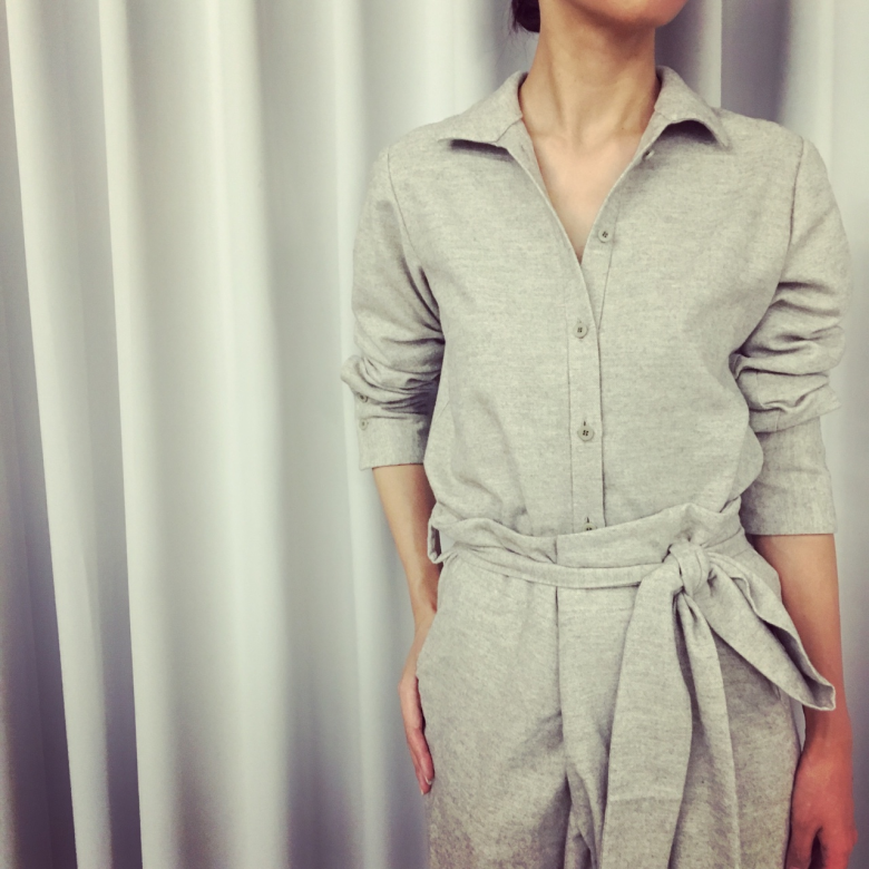 あえて大きめなウエストは、ぎゅっと結びニュアンスのあるスタイルに。