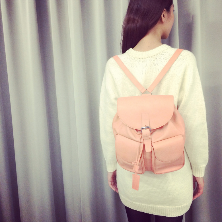 きれいなコーラルピンクのレザーリュックはいかがでしょうか???