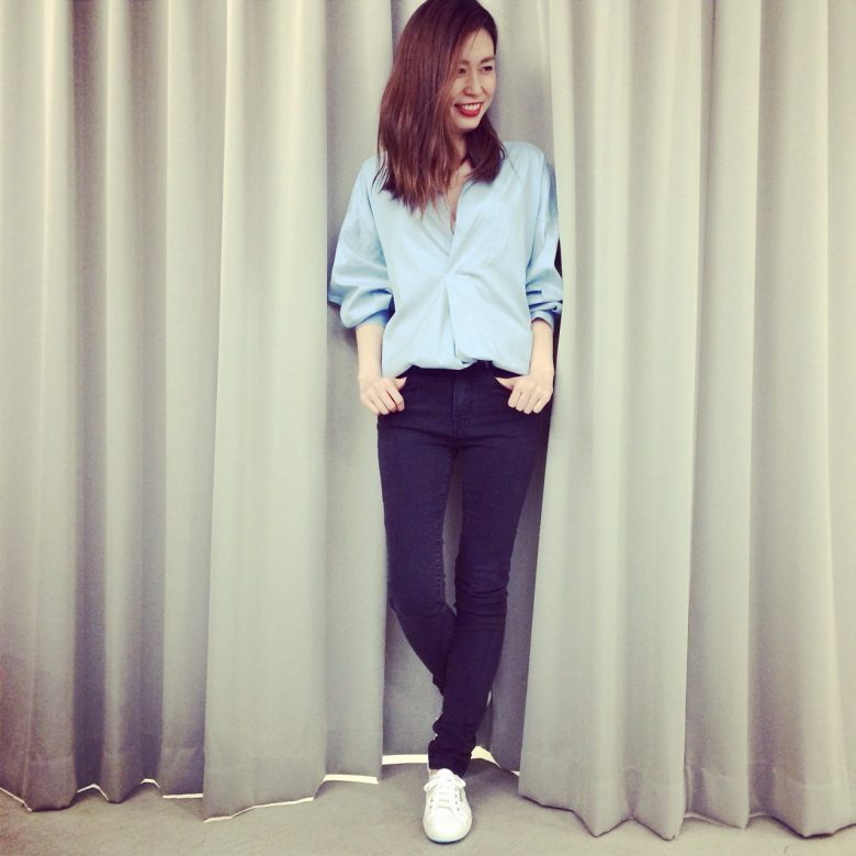 さらりとしたオーバーサイズのシャツをハイウエストボトムにinして80’sの雰囲気に♪