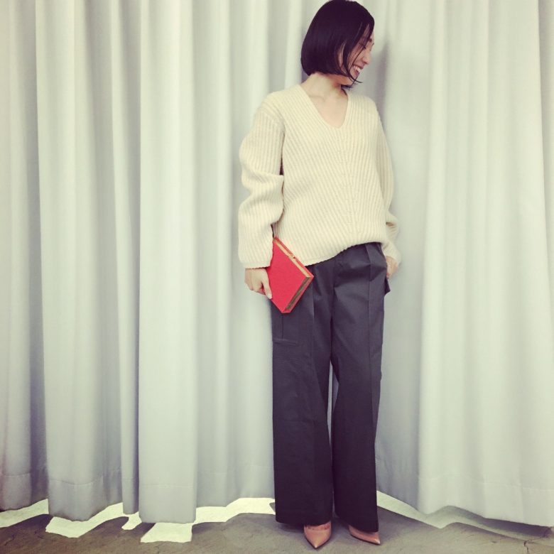 TOKYO 02.10.2016 ざっくりとしたニットの風合いと、Vネックの女性らしいシルエットのバランスがたまらないアイテムです。 tops ACNE STUDIOS size…S ¥41,000+tax 16aw acne acnestudios mame mamekurogouchi WEAR