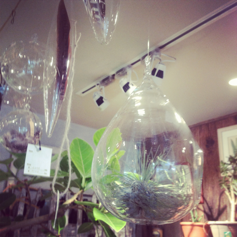 しずくのカタチのガラスのうつわ。再入荷しました。エアプランツや石やガラス玉やサボテンや好きなものをいれて吊るすとすてきです。