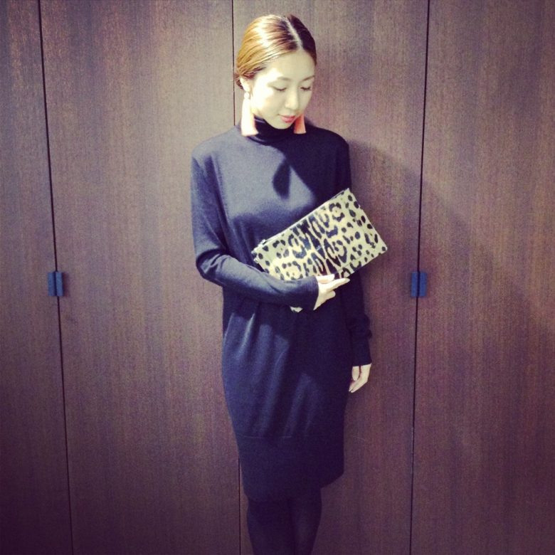 ゆったりと着られるニットワンピース。リブの幅が太めで女性らしくお召しいただけます。