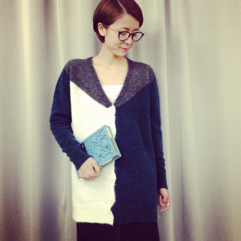 ゆったりシルエットのカーディガンは、セーラーカラーのような切り替えが女の子らしさをプラスします。