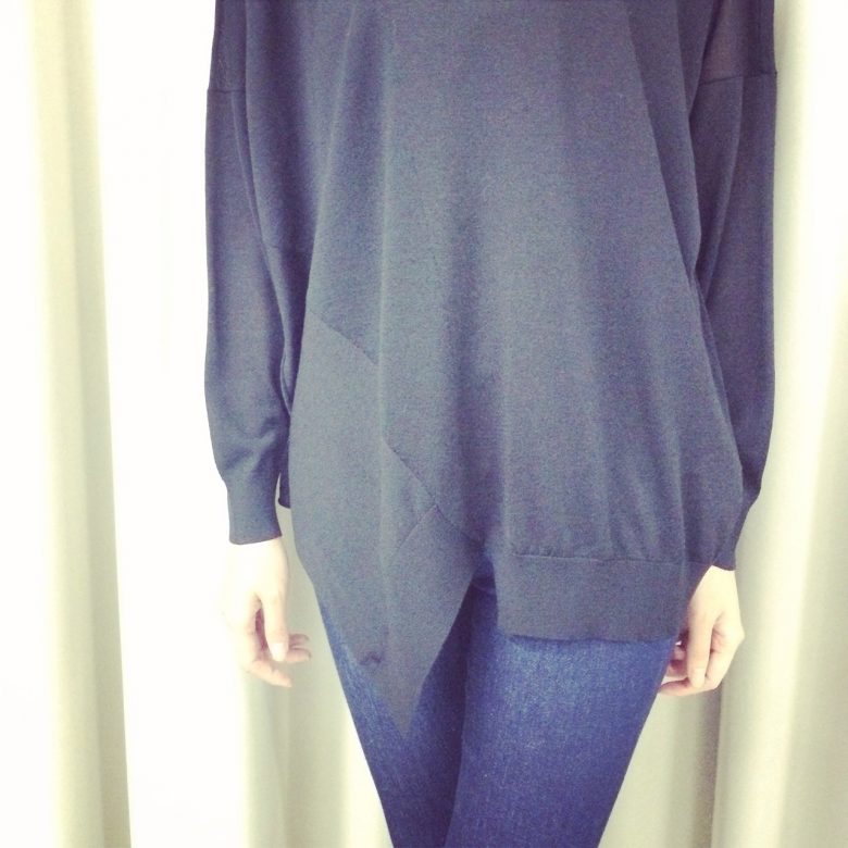 アシンメトリーな裾で太もも周りもスッキリ◎