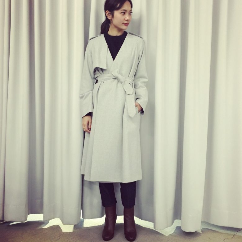 TOKYO 21.10.2016 ウールの柔らかみとたゆみが美しいトレンチコート。ライトグレーで着回しやすさも魅力的です。 Dessin de mode ¥63,000 + tax 16aw dessindemode WEAR