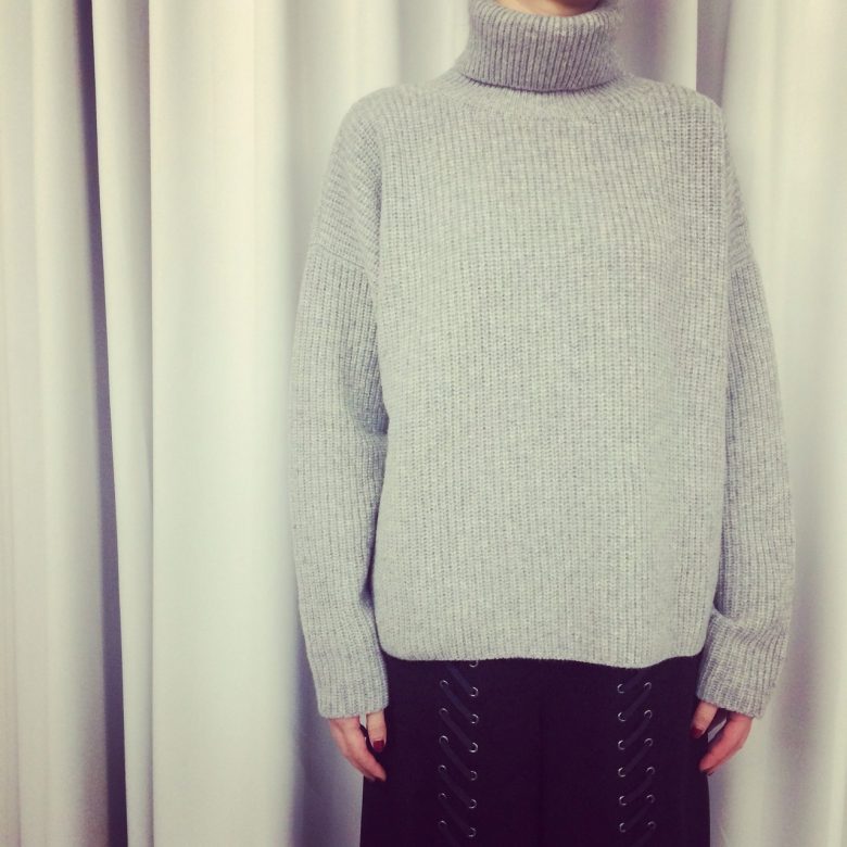 ウール100%のリブニットですが軽い着心地なのも魅力。