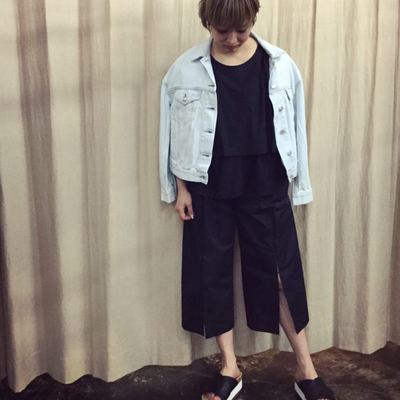 淡いカラーのGジャンを羽織って春らしい装いに…