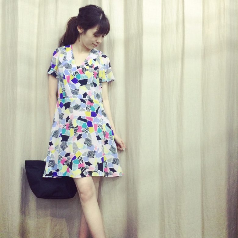 22.06.2015 カットペーパー風のカラフルで テキスタイルがアイキャッチな 膝丈ワンピース♩ シルク100%素材の心地よい肌触りも◎ MAISON KITSUNE ¥70,000+tax maisonkitsune