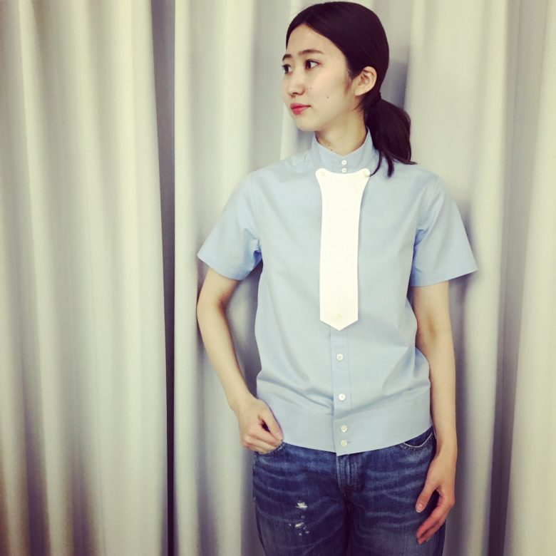 着脱可能なタイのようなディテールが特徴的で、一枚で様になるデザイン。