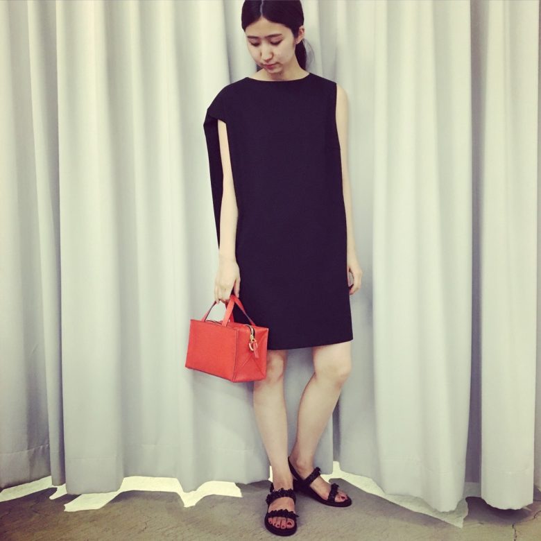 TOKYO 25.04.2016 コットン素材で着心地が軽いブラックドレスも、得意の包み込むシルエットで身体のラインをすっきりと見せてくれます。 ENFOLD color…black,orange size…36,38 ¥39,000+tax 16ss enfold epoi valentino WEAR