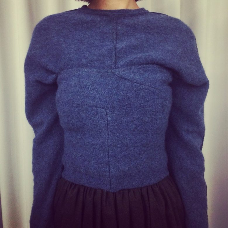 コルセットをプラスすることでドルマンスリーブに独特なシルエットがうまれます。