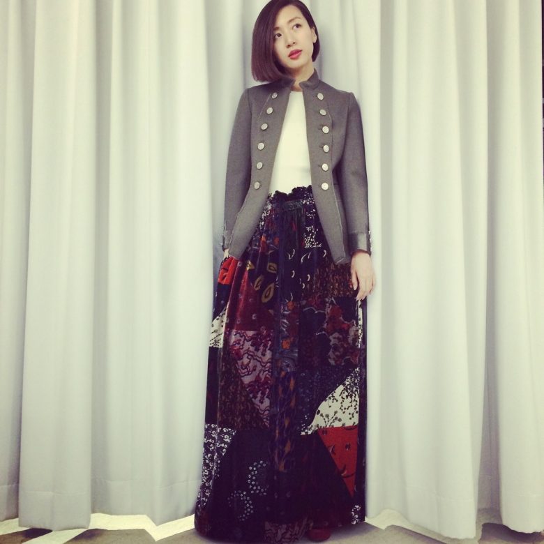 コレクションでも目を惹いたChloe’のマキシ丈のパッチワークスカート。