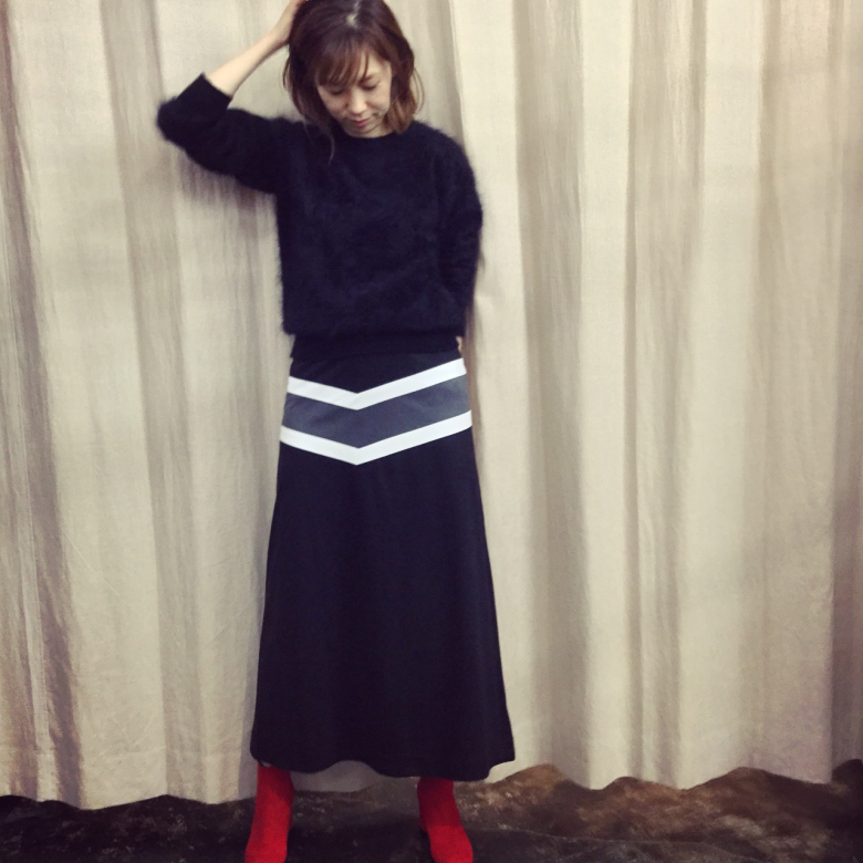 コンセプト通りシンプルなトップスに合わせても
