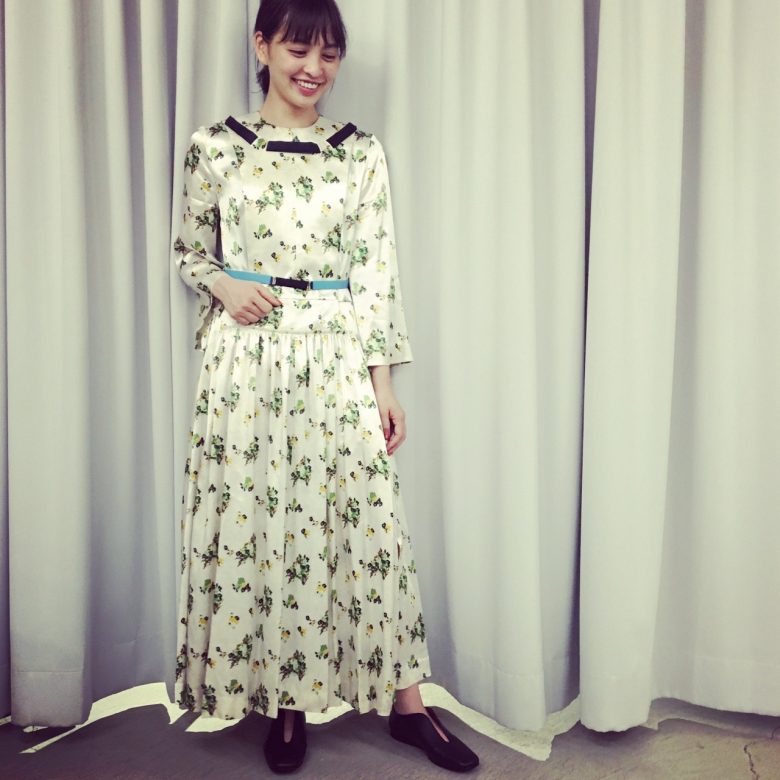TOKYO 26.06.2016 サテン生地にフラワープリントを施したドレス。ベルト使いでTOGAらしいメリハリのあるデザインに。 TOGA PULLA size…36 ¥79,000+tax 16ss stellamccartney togapulla WEAR