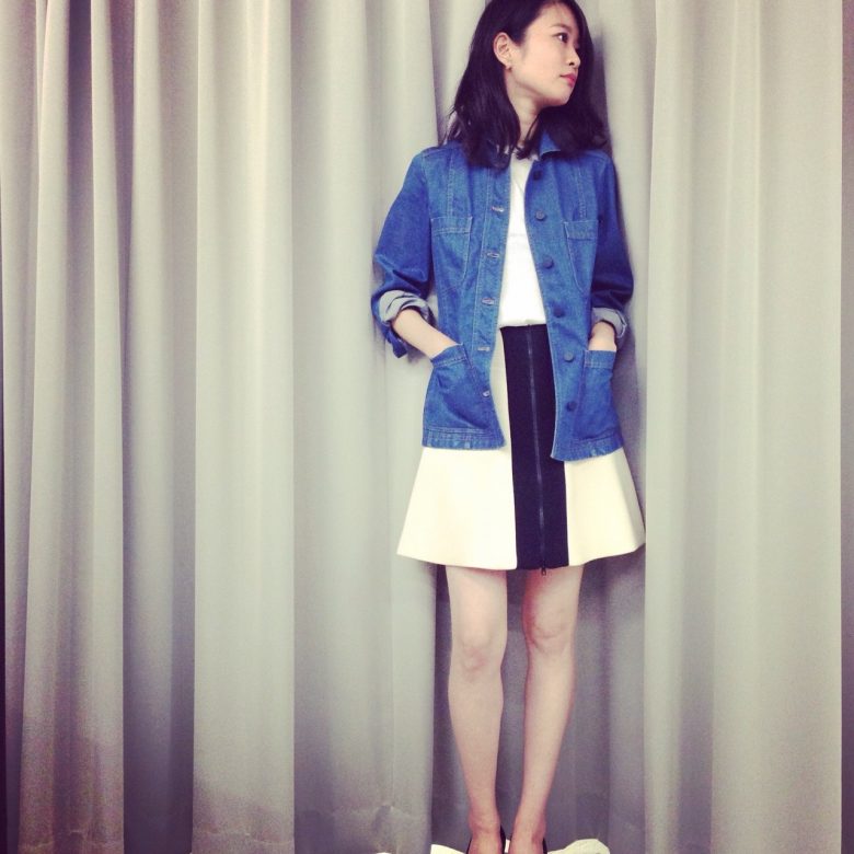 シャープに見せてくれるフロントのデザインが目を引くAラインスカート。