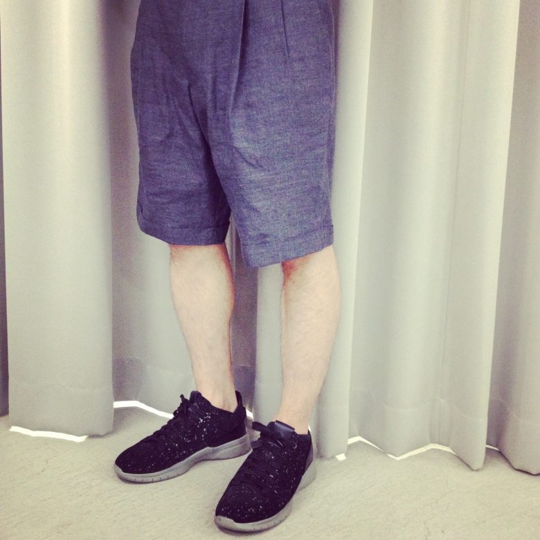 ショートパンツはパンツと同じく2タックに、裾はダブルの仕上げ。