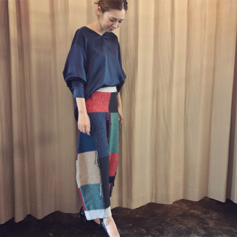 シルクとニットの異素材でのコーディネートで少し早めのAW感を