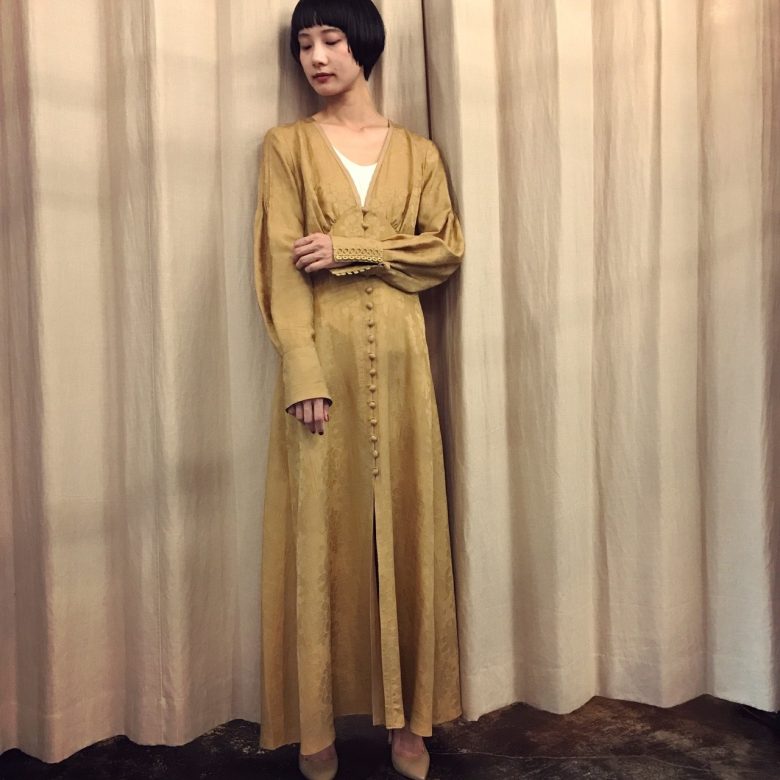 OSAKA 30.07.2017 シルクの上質な光沢感を備えてアイコニックなカフスがアクセント。ゆったりとした両袖がクラシカルな印象を与えてくれる秋冬に早く着たくなる一枚です♡ mame kurogouchi one-piece ¥92,000+tax 17aw mame WEAR