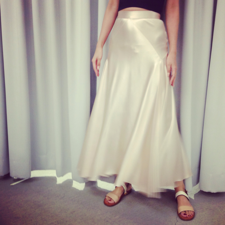 シルクのskirtは光沢が美しいです。