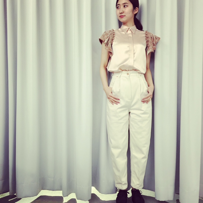 シルク×ベロアの組み合わせがクラシックな雰囲気を漂わせるブラウス。