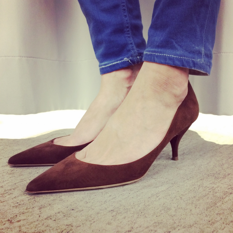 シンプルでプレーンなポインテッドヒールは、形の美しさで勝負。