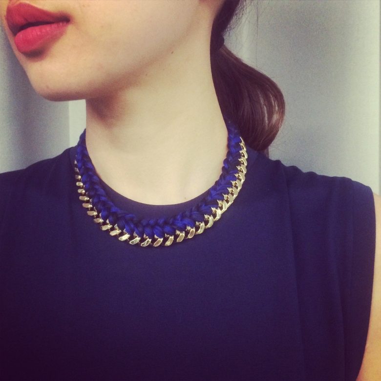 シンプルなコーディネートのアクセントに、シックなネックレスを。
