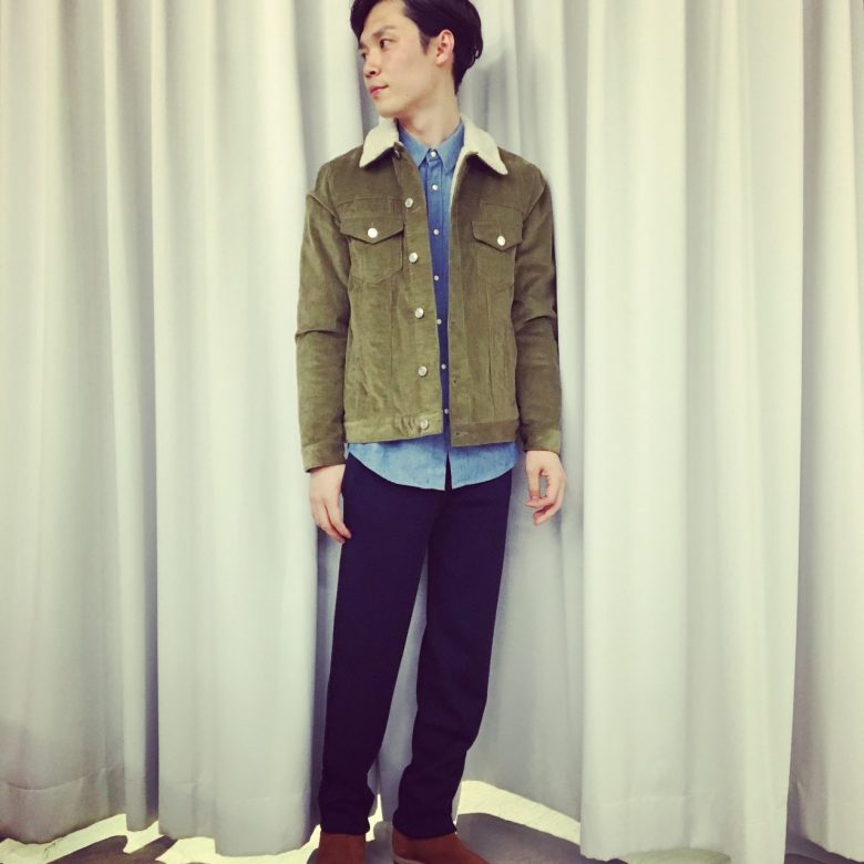 シンプルなコーデュロイジャケットとニットパンツでベーシックでありながらも今年らしい大人のカジュアルスタイルに。