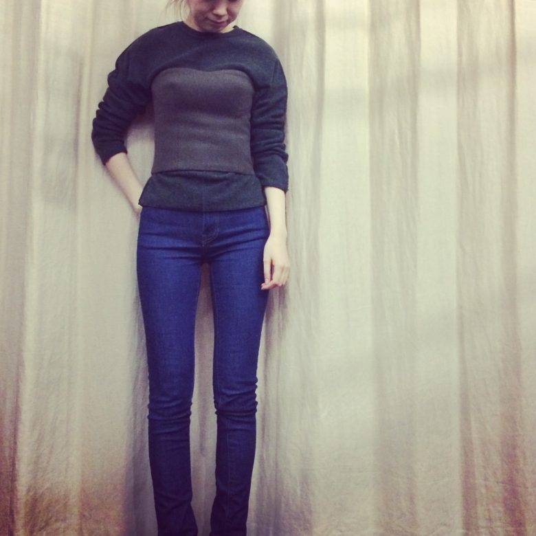 20.12.2015 シンプルなデニムスタイルに同系色の異素材の組み合わせでアクセントに♩ STELLAMcCARTNEY corset ¥92,000+tax knit ¥83,000+tax stellamccartney