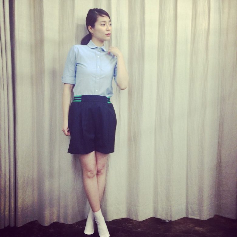 24.02.2015 シーンを選ばず着れる半袖シャツ スッキリと着こなせる細身のシルエットが女性らしく見えます♫ tops MADISON BLUE ¥23,500+tax pants STELLAMcCARTNEY ¥73,000+tax madisonblue stellamccartney