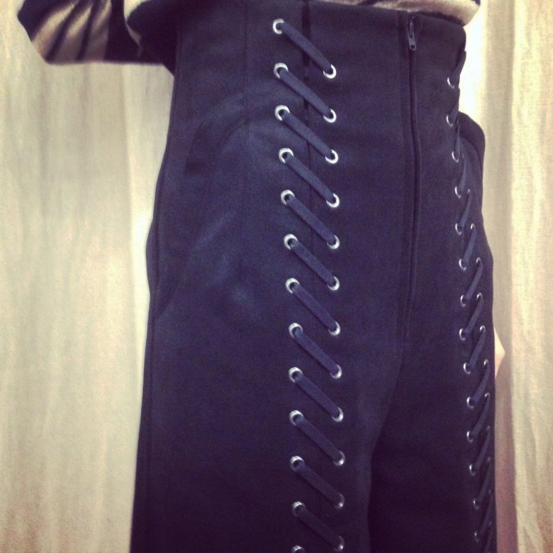 スエードタッチのフェイクレザーを使用した編み上げワイドパンツ。ハイウエイでスッキリと、ポケット口がアクセントに。