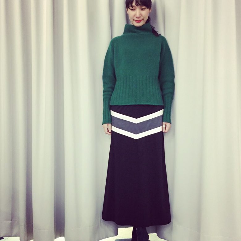 CLEANAの新作はストリートな雰囲気漂うVラインの入ったマキシ丈スカート。