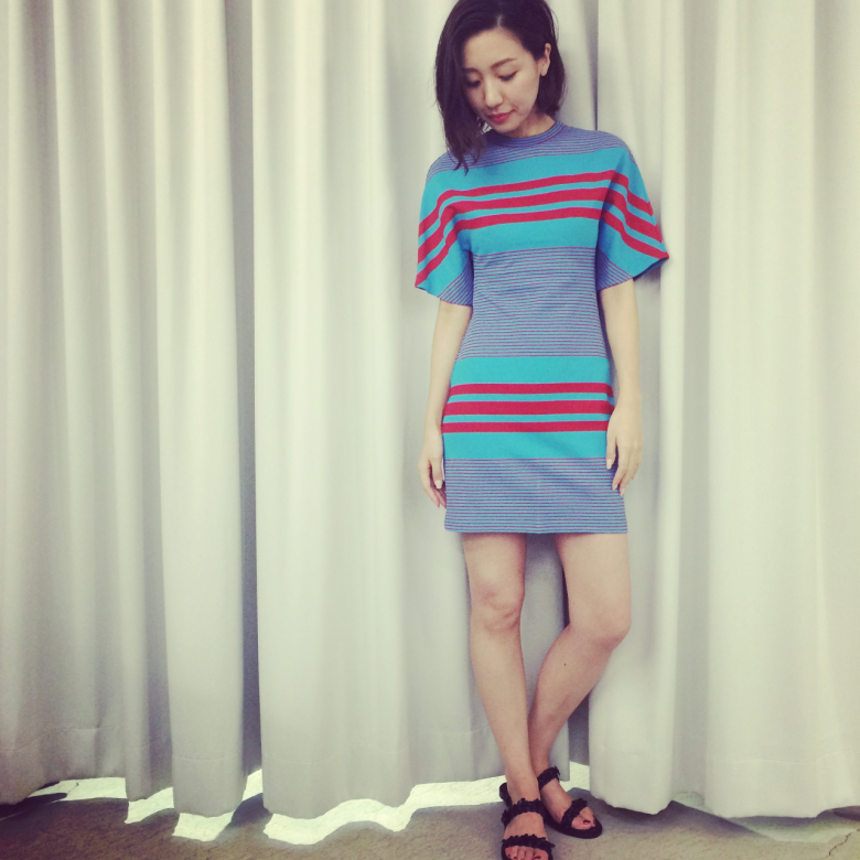 TOKYO 07.03.2016 ストライプがボディラインと重なって波形を描きます。 ROSETTA GETTY col…aqua×red,white×navy ¥100,000+tax 16ss rosettagetty WEAR