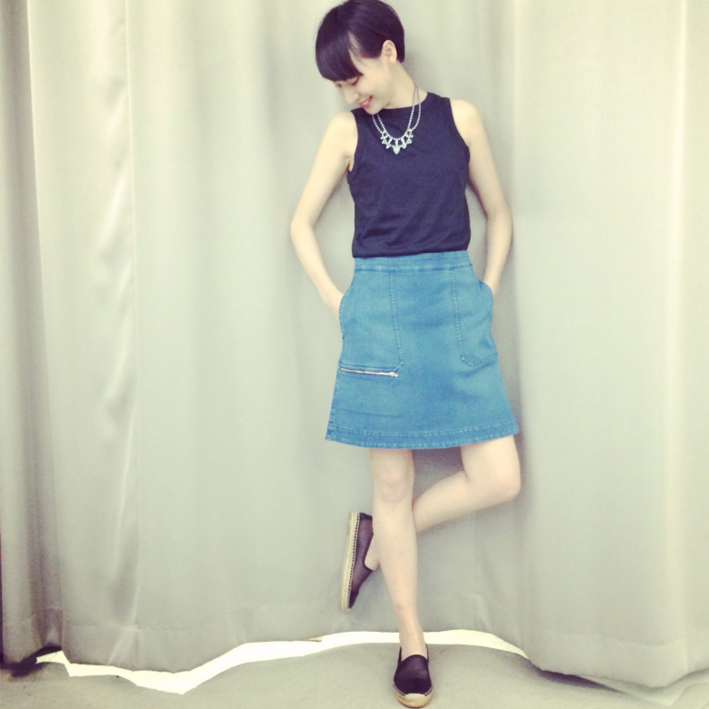 29.04.2014 ストレッチが入っていて履き心地も◎ ネックの詰まったカットソーとの合わせが今年の気分です。 top…pelleq size…S , M skirt…STELLA McCARTNEY size…38 , 40 pelleq stellamccartney tom binns