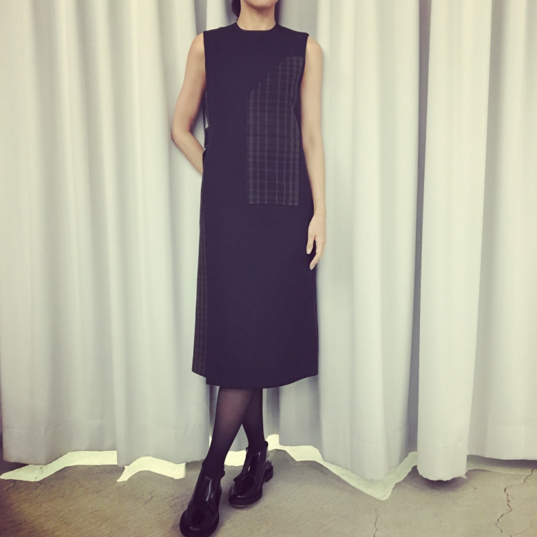 TOKYO 27.08.2016 ストンとシルエットが綺麗なドレスはミリタリーテイストでマニッシュに着こなして頂けます。 オリジナルのチェック柄が♡ HYKE price…¥65,000+tax color…black 16aw hyke WEAR