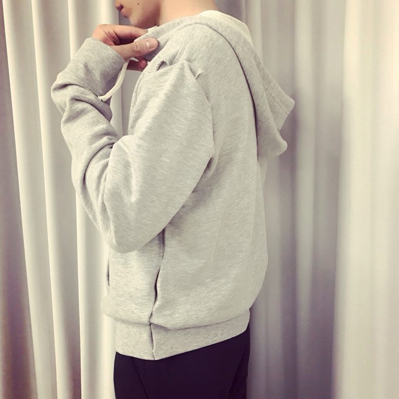 スナップボタンでフードと袖が着脱可能なデザインに。