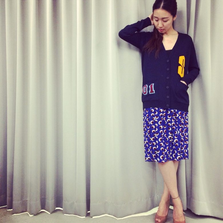 スポーツテイストも、華やかなシルクプリントと組み合わせれば女性らしく着られます。