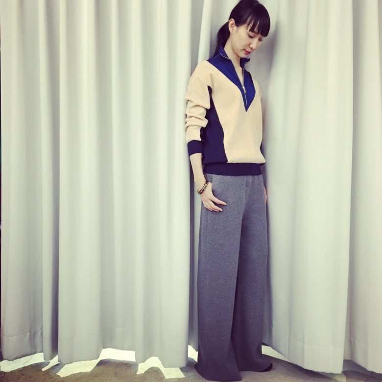 スポーティなジャージートップスで、一気に今年らしい雰囲気に。