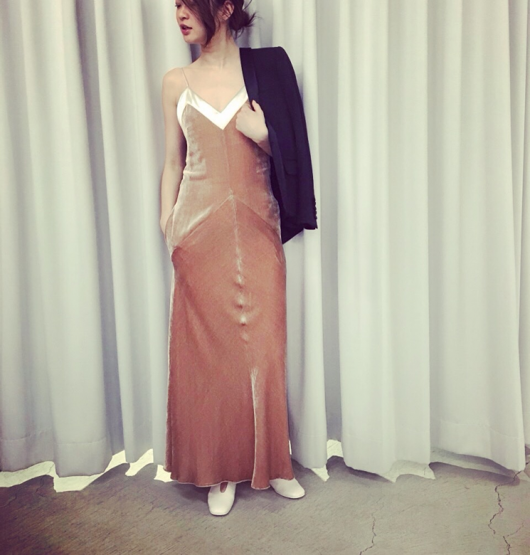 TOKYO 23.03.2016 スリップドレスはベロア調でクラシカル。 ポケットも付いていて少し男前に着こなしたい1枚。 Hillier Bartley price…¥320,000+tax color…pink 16ss hillierbartley WEAR
