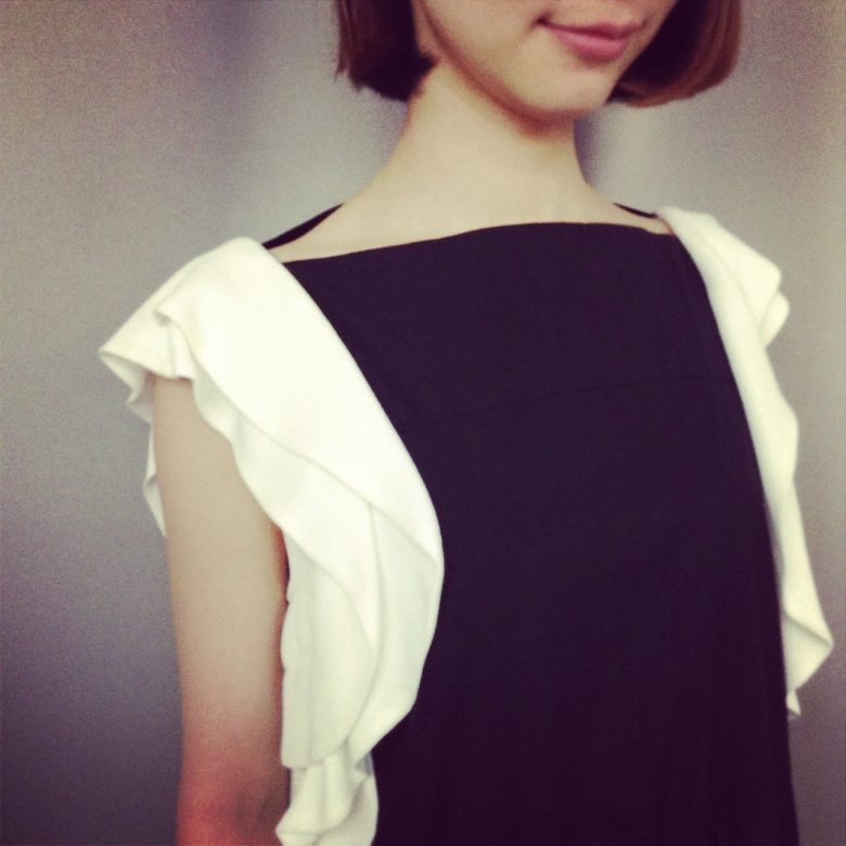 スリーブのフリルが二の腕をスッキリ見せてくれます◎