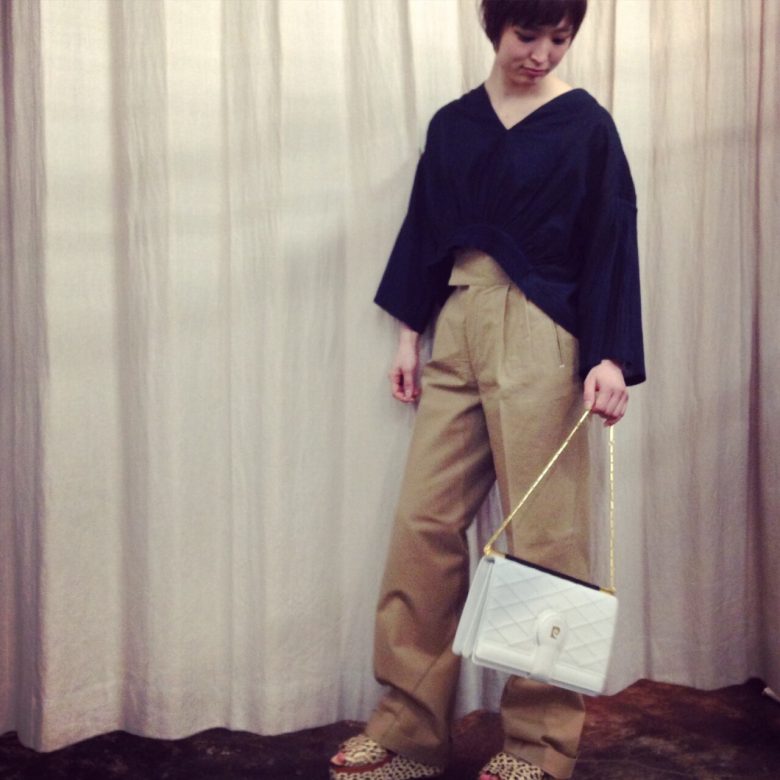 ハイウエストなので短めのトップスであわせてスッキリと…