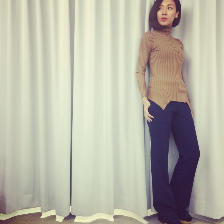 タートルネックやハイネックにフレアパンツが今年の気分です。