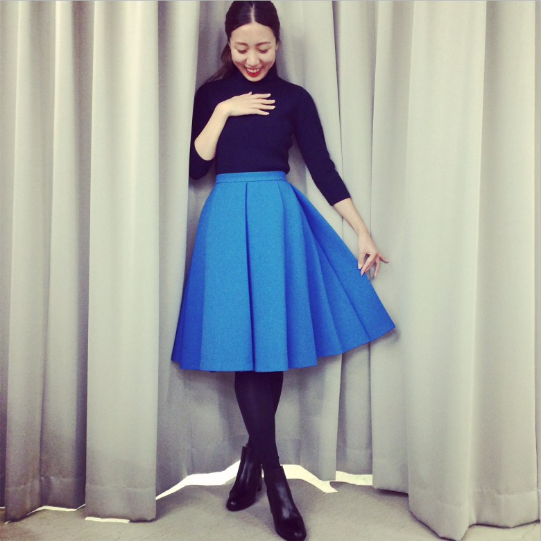 チューリップのような広がりが出るように計算されたプリーツスカート。