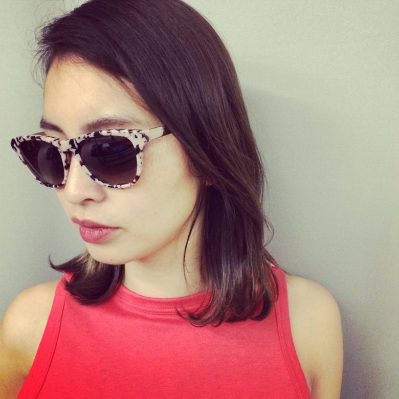 テンプルがゴールドで大人っぽい印象でかけられます。
