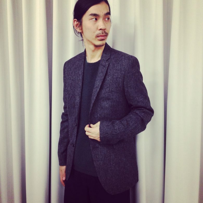 ツイードのジャケットにモスグリーンの差し色がおすすめです!
