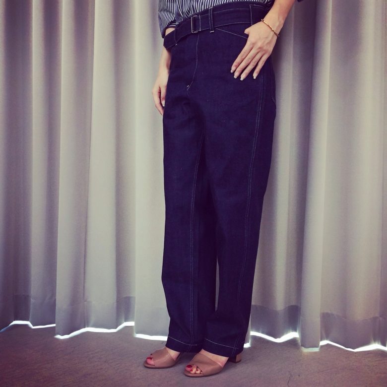 ベルトをぐっとしぼって、腰で落として、ルーズに…。