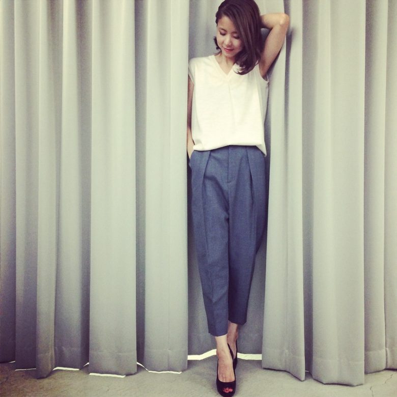 七分丈で足首を出して美脚効果を◎