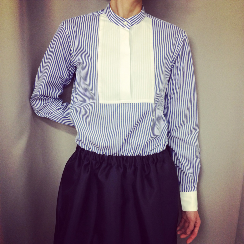 テーラーメイドのシャツを女性らしく着こなして。。。。。